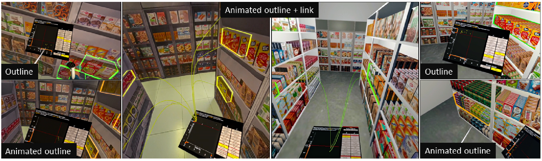 Abstract. In traditional visual analysis, brushing and linking is commonly used to visually connect multiple views using highlighting techniques. However, brushing and linking has rarely been used in situated analytics, which uses visualizations to analyze data in the context of physical referents. In situated analytics, data representations must be visually linked to real-world objects. Previous work has assessed situated brushing and linking in a virtual reality simulation of a supermarket scenario. Here, we replicate and extend the previous approach by studying brushing and linking in an actual physical space with augmented reality, while further improving the highlighting techniques. Using a video see-through display, we compare augmented reality with virtual reality. Results suggest that AR performs better in time and accuracy, but the effectiveness of the techniques varies by condition. These results provide a new framing of how the real-world stimuli matter in situated analytics.